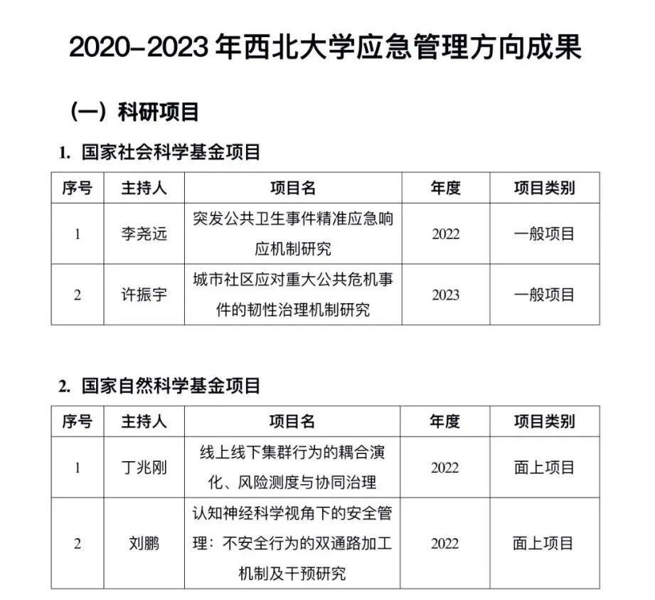 NO.7 2020—2023年应急管理团队代表科研项目和期刊论文成果一览