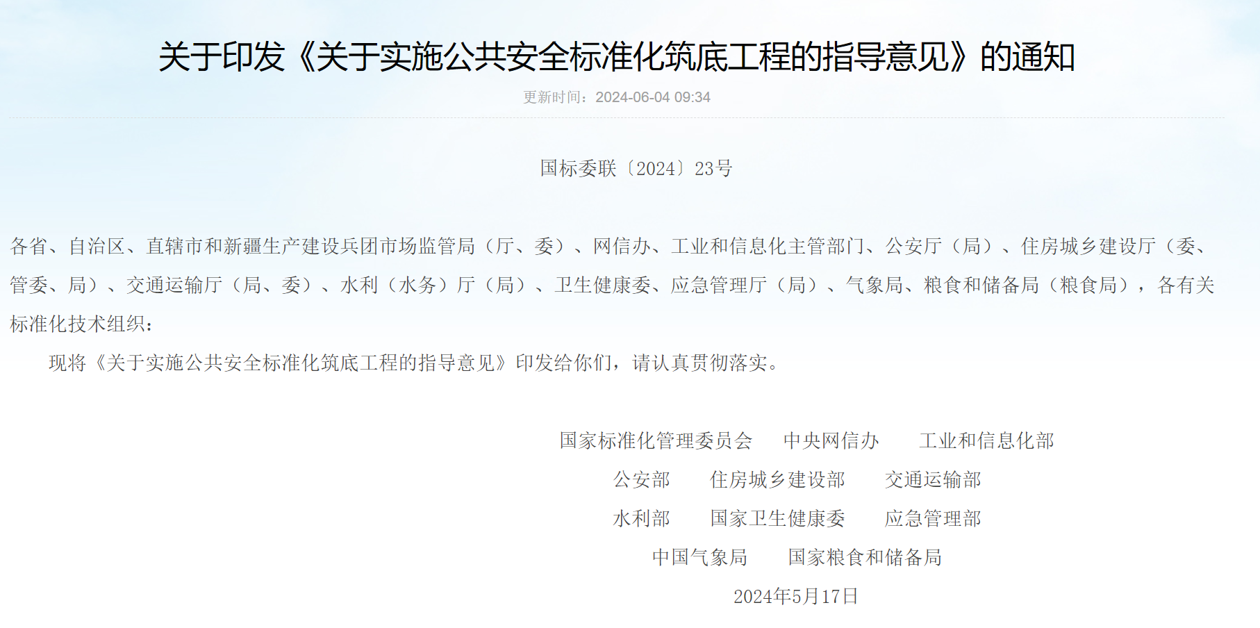 关于实施公共安全标准化筑底工程的指导意见