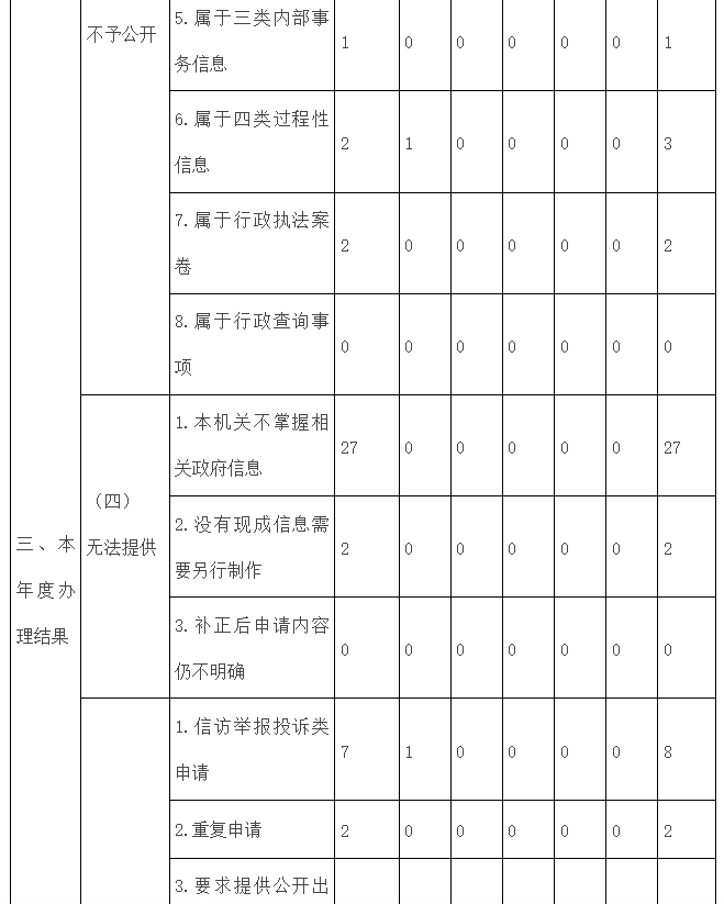 三、收到和处理政府信息公开申请情况