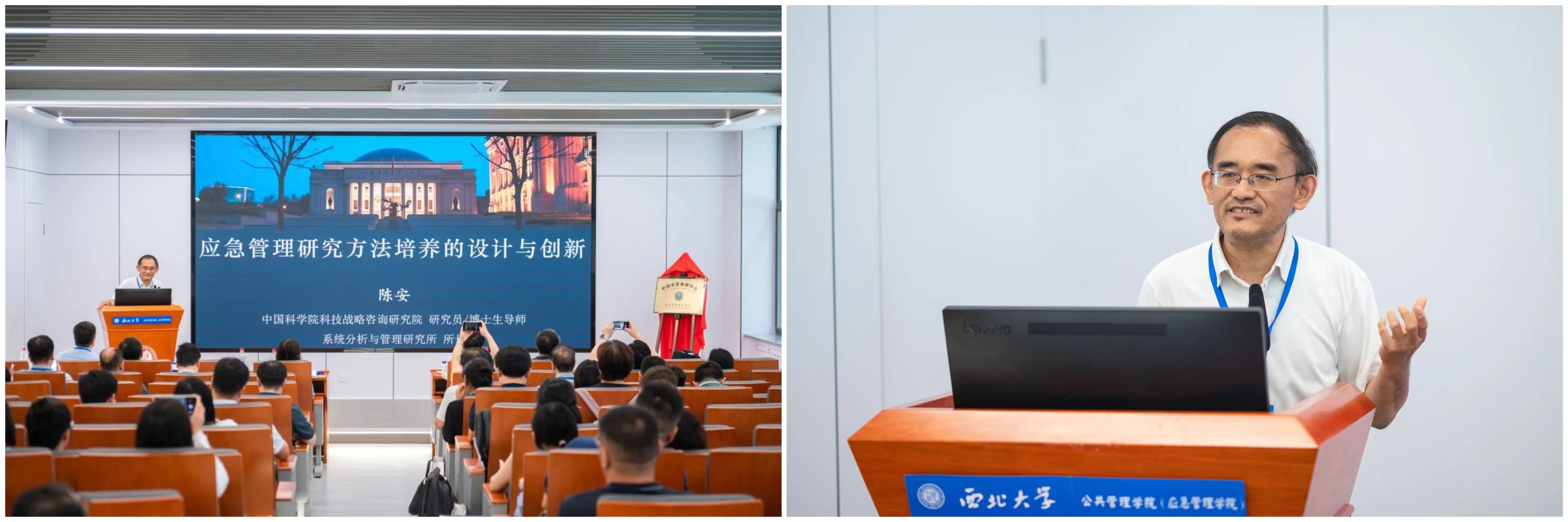 大会第三阶段,由西北大学公共管理学院(应急管理学院)院长雷晓康主持主旨演讲环节。国务院学位委员会公共管理学科评议组联合召集人,武汉大学教授丁煌作《作为公共管理学科的应急管理》主旨演讲,他明确了应急管理学科属于公共管理学科范畴,作为公共管理学的二级学科,应急管理以应对突发事件全生命周期中的政策与管理问题为研究内容,融合了管理学、政治学、社会学、经济学、法学、心理学、传播学等多学科知识,并综合应用计算机科学、人工智能、数据科学等技术方法。