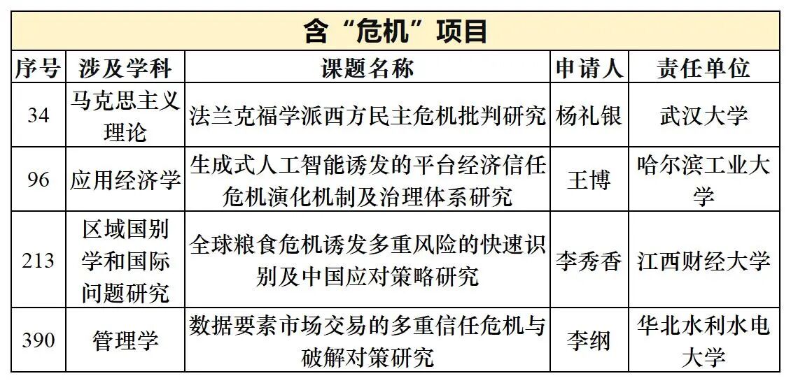 搜集整理了课题中含【安全、风险、应急、突发事件、事故、灾害、危机、韧性】的2025年国家社会科学基金重点/一般/青年项目立项名单,与大家共享。另外,很多课题为“题目略”,估计也与安全相关。