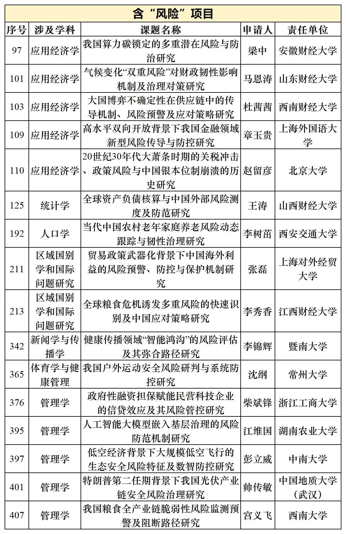 2025年国家社会科学基金项目立项结果近日公布,该文章系统整理了含安全、风险、应急、突发事件、灾害、危机、韧性的相关项目,不仅清晰展现了当前国家层面关注的研究方向与重点领域,更为学界把握科研动态、开展课题申报以及促进学术交流提供了重要参考。
