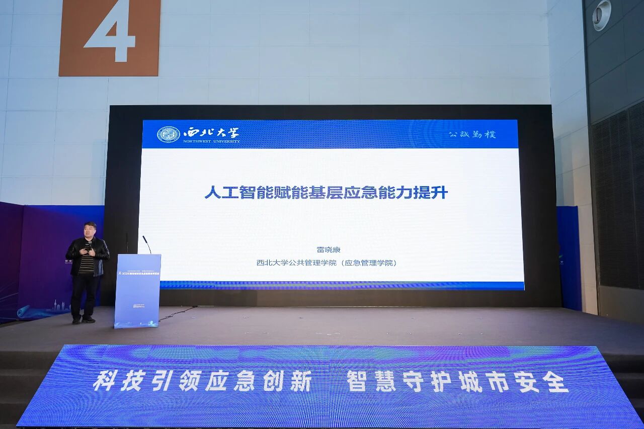 我院雷晓康院长出席了应急产业项目推介会并压轴作了题为《人工智能赋能基层应急能力提升》的报告。他剖析了当前基层应急能力建设的核心难题与AI顶层设计的战略意义,进而从智能预警、资源调度、决策辅助等维度,系统阐述了AI赋能基层应急的关键技术路径,最后前瞻性地提出了构建AI驱动的新型基层应急管理体系的理论框架与实施建议,为推进基层应急管理现代化提供了重要思路。