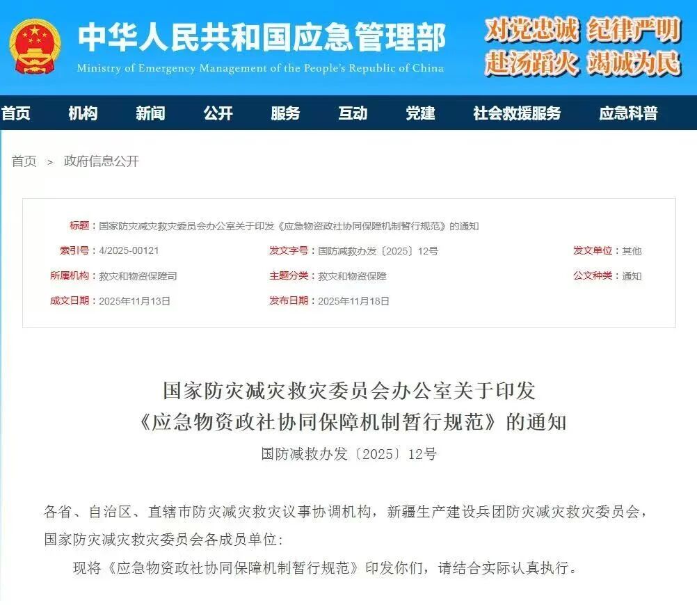 应急物资政社协同保障机制暂行规范