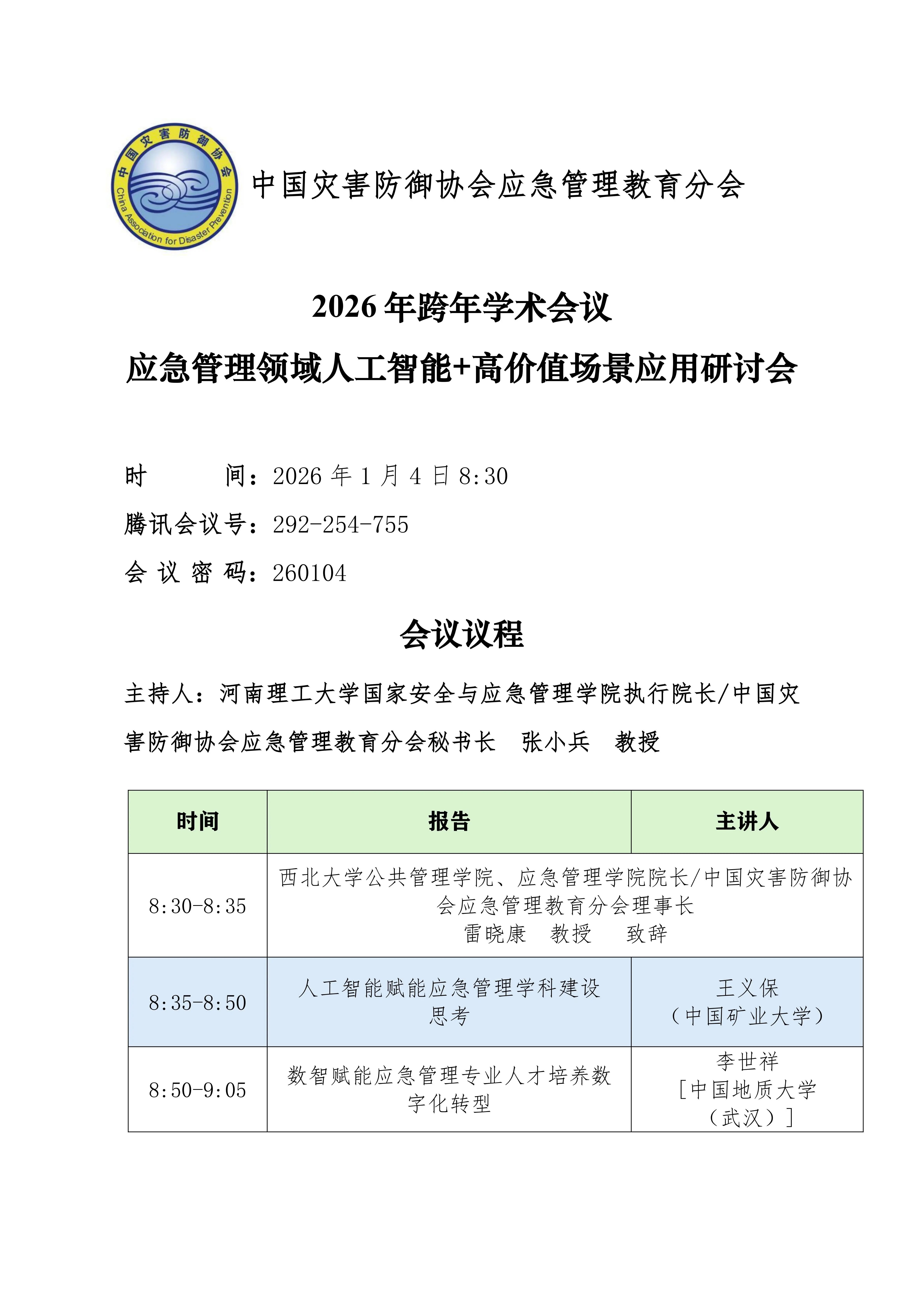 会议通知 | 2026年跨年学术会议:应急管理领域人工智能+高价值场景应用研讨会