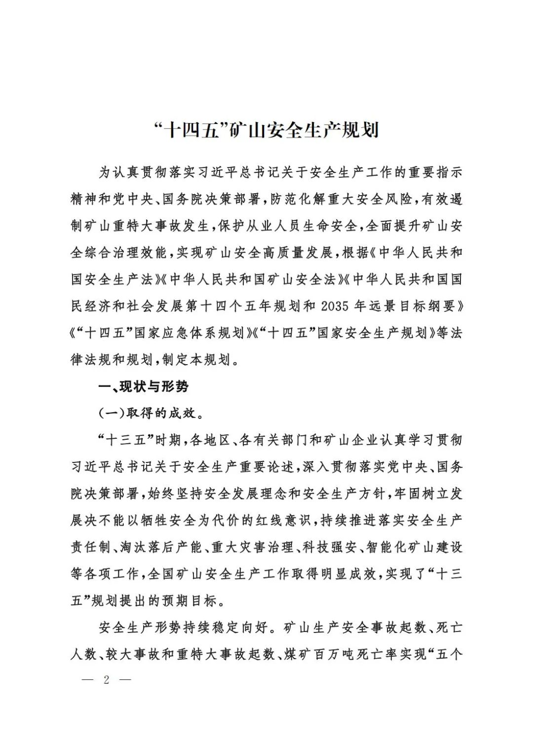 《“十四五”矿山安全生产规划》印发