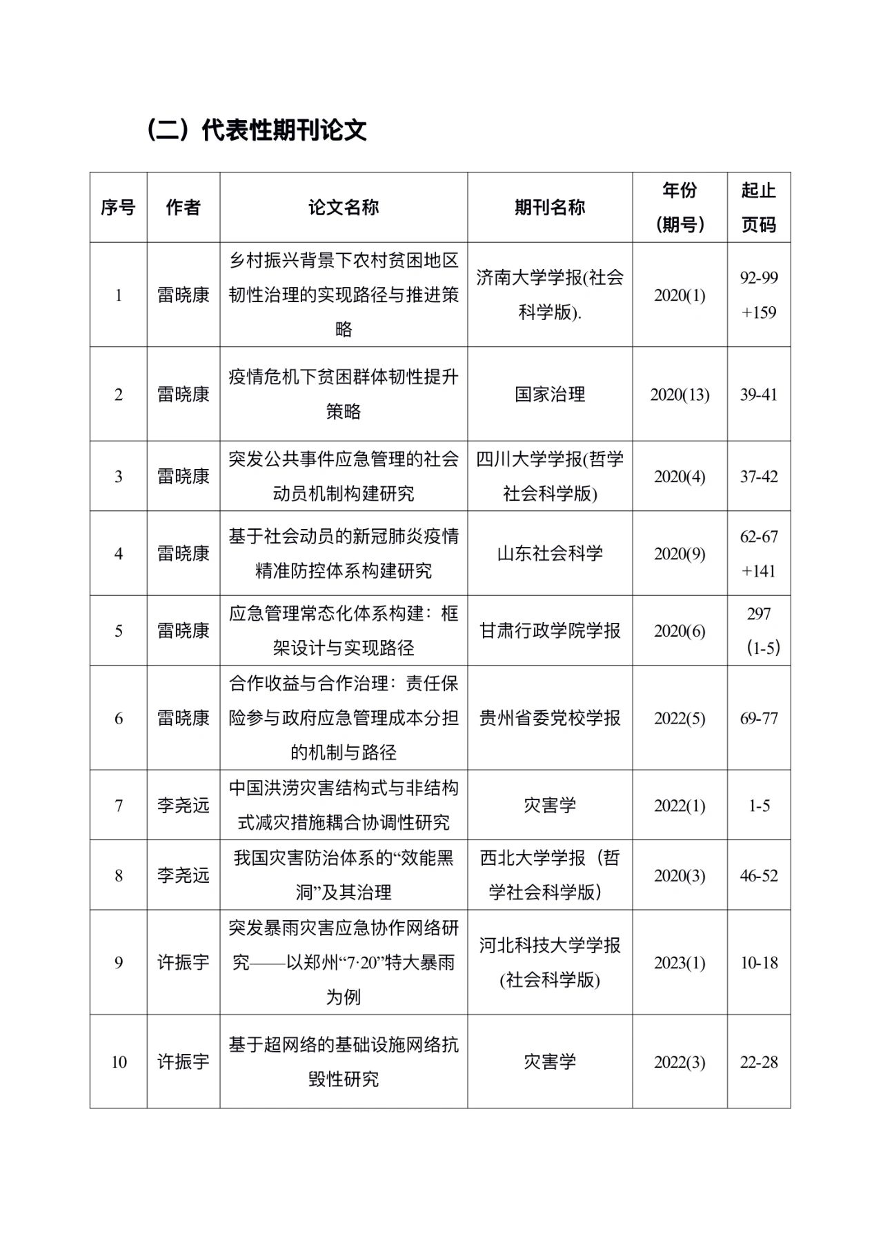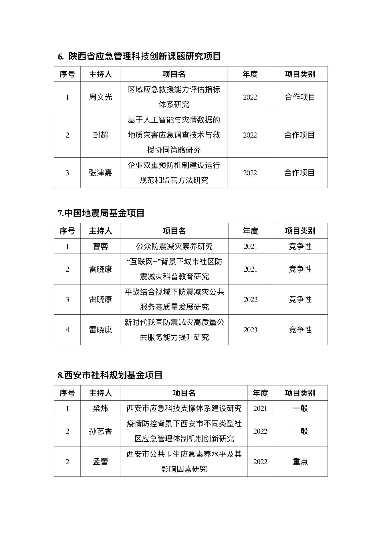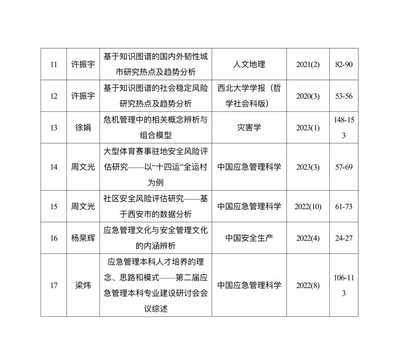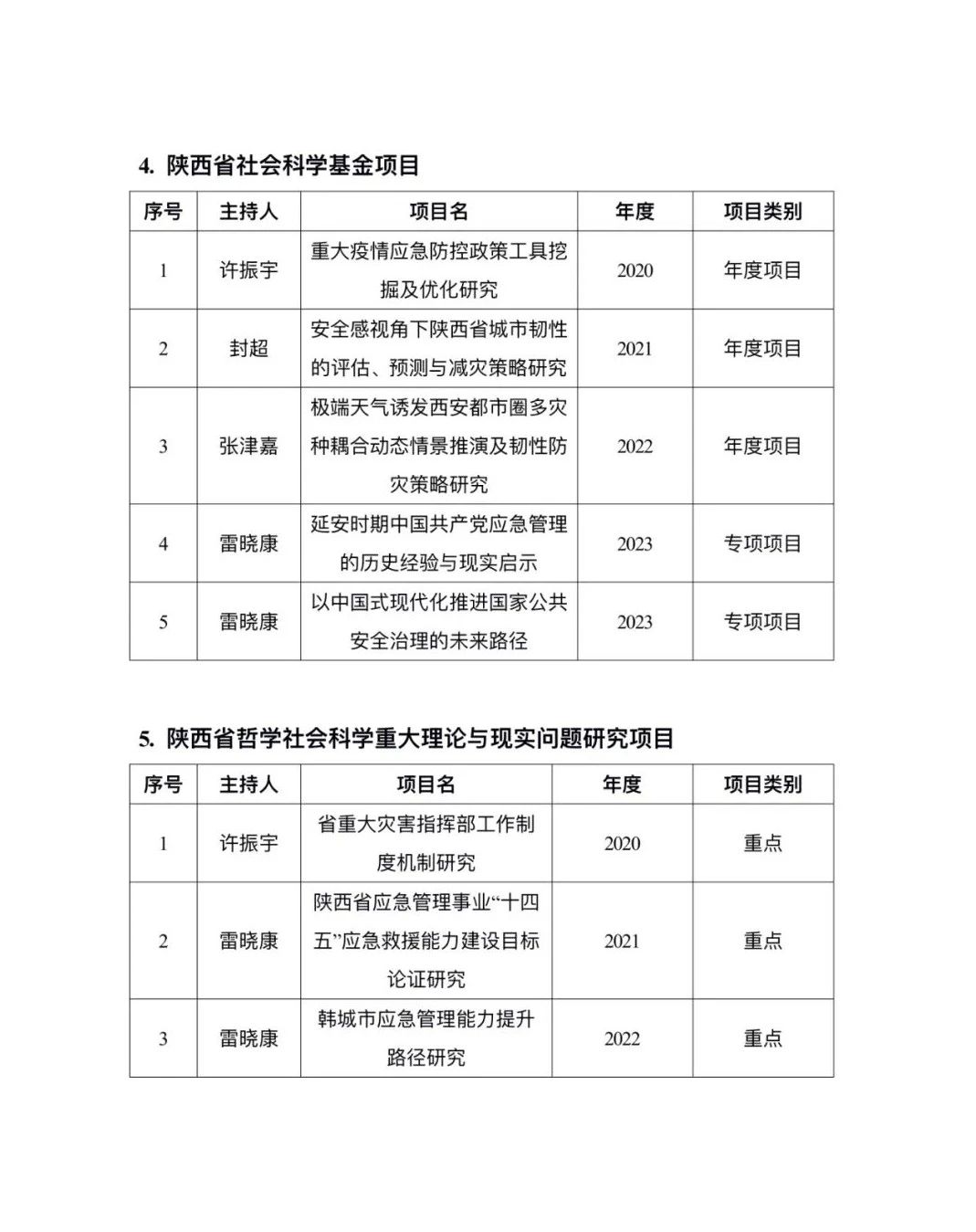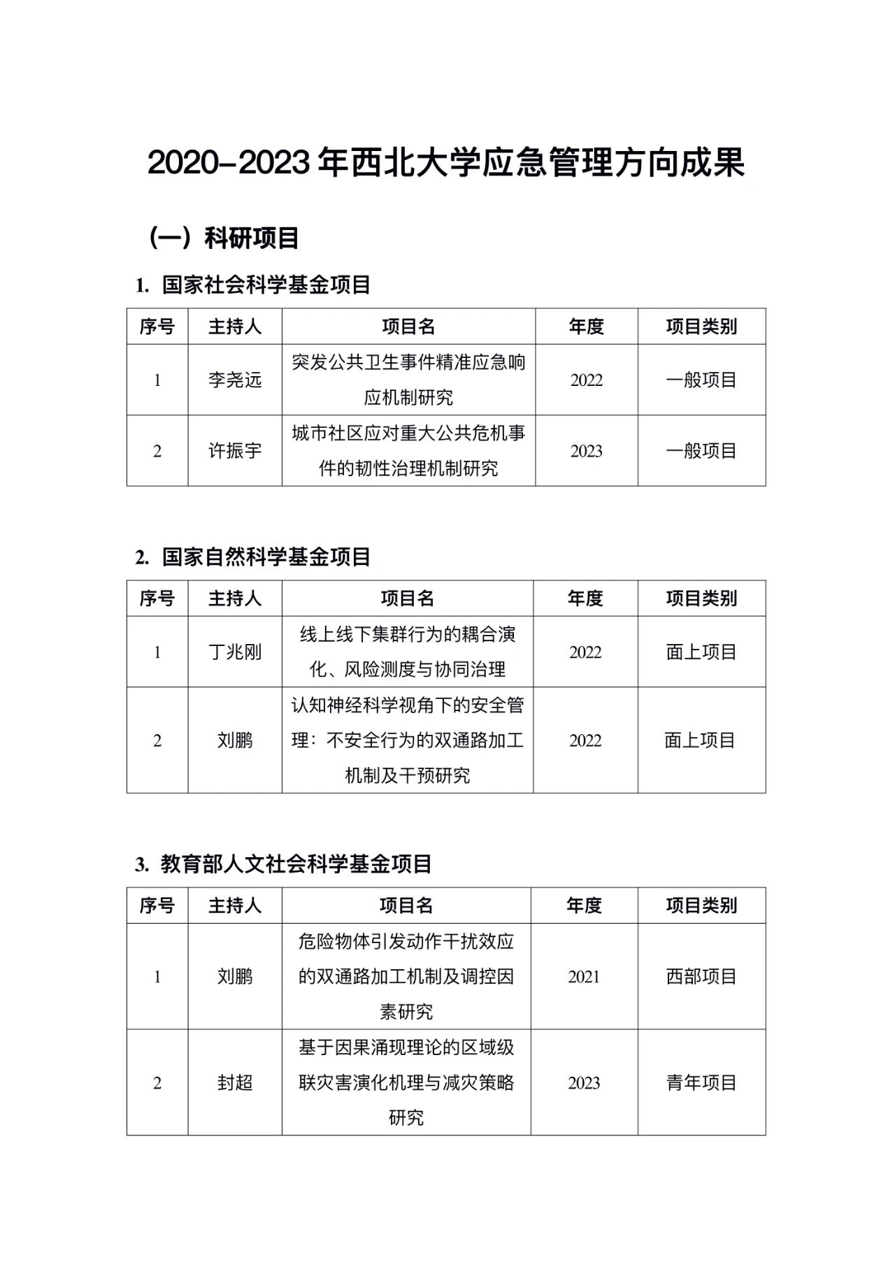 2020-2023年应急管理团队代表科研项目和期刊论文成果一览