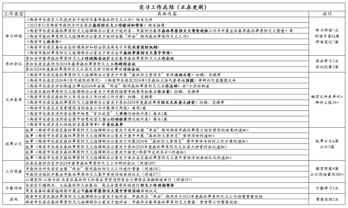 此外,目前还有其他应急管理专业的同学在西安市应急管理局、未央区应急管理局、雁塔区应急管理局、新城区应急管理局、碑林区应急管理局、莲湖区应急管理局等单位积极努力地开展着实习工作,也将陆续推出其阶段性实习总结。