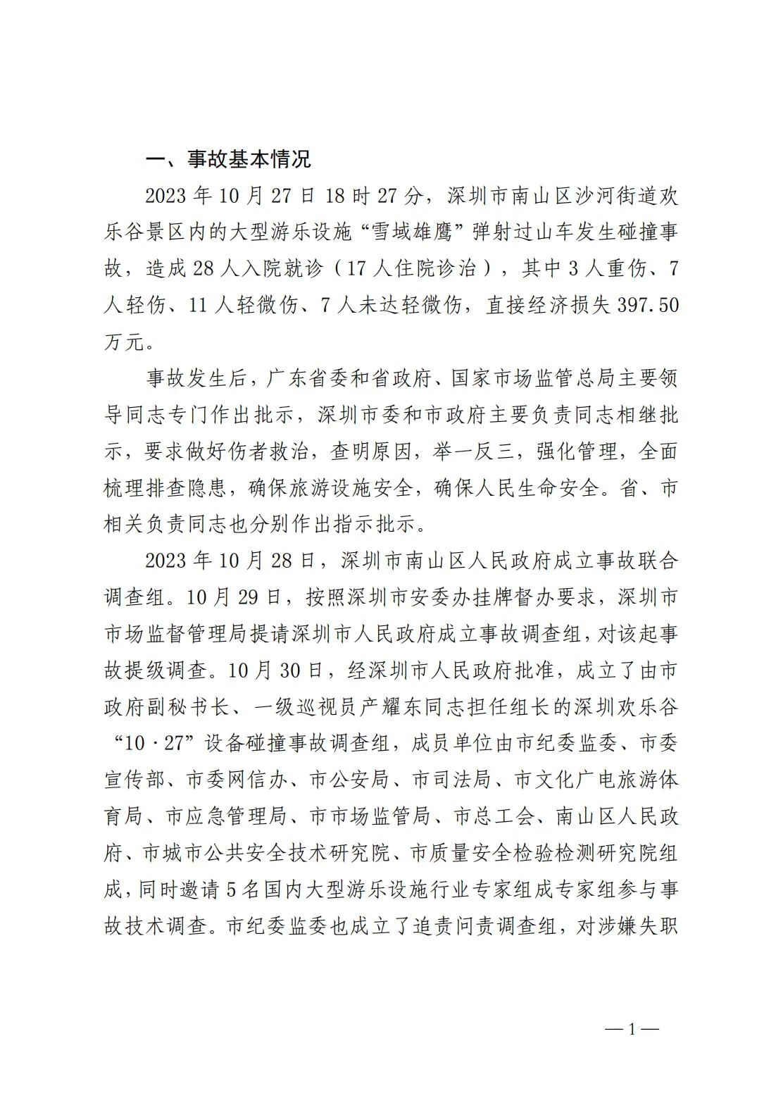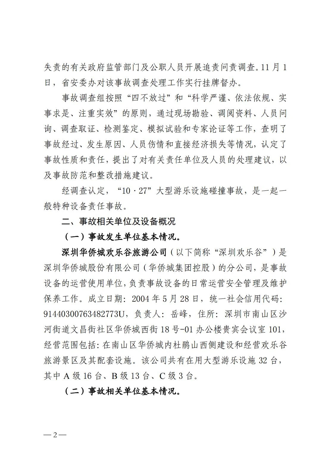 调查报告 | 广东省深圳市“10·27”一般大型游乐设施碰撞事故调查报告