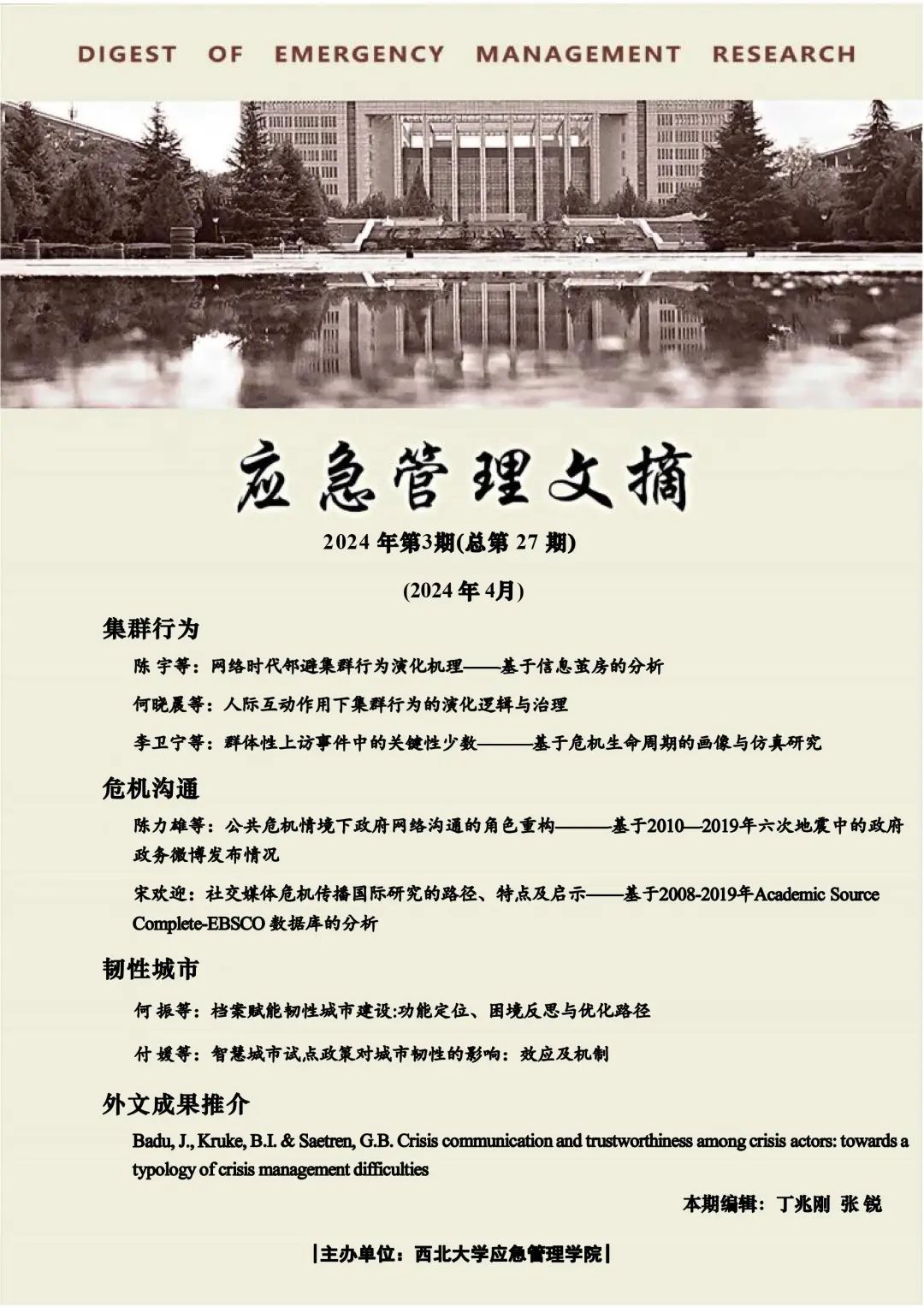 上一条:《应急管理文摘》第二十八期 下一条:我院师生参加2024年海峡两岸应急管理与人才培育专家论坛