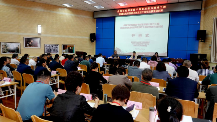 5月13日上午,由新疆维吾尔自治区文化和旅游厅主办,中央文化和旅游管理干部学院和西北大学公共管理学院(应急管理学院)承办的“全国文化和旅游干部素质能力提升工程——新疆文化和旅游系统党政干部党性教育培训班”在延安大学路遥报告厅举行开班式。开班式由中央文化和旅游管理干部学院文化事业培训部王志远主持,西北大学公共管理学院(应急管理学院)院长雷晓康致欢迎词,新疆维吾尔自治区文化和旅游厅旅游培训中心副主任石玥作动员讲话,来自新疆维吾尔自治区文化和旅游厅近两年来新任职副处级干部、近两年来入选“四个一批”“天山英才”“突出贡献专家”等专项人才工程的专业技术人员,各地州文化和旅游行政主管部门县处级干部60人参加了开班式。
