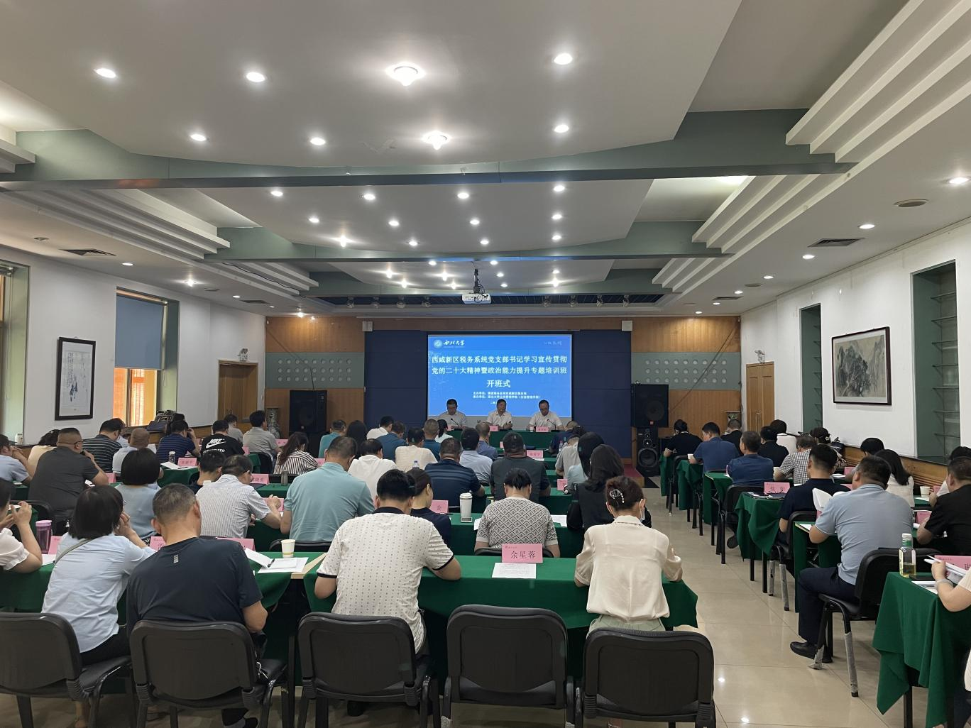 2023年6月13日,由国家税务总局西咸新区税务局主办,我院承办的“西咸新区税务系统党支部书记学习宣传贯彻党的二十大精神暨政治能力提升专题培训班”顺利开班。开班式由西咸新区税务局机关党委办公室党支部书记马斐主持,西北大学公共管理学院(应急管理学院)党委书记窦争光致辞,国家税务总局西咸新区税务局党委委员、副局长张演做动员讲话,来自西咸新区全区税务系统党支部书记70人参加了开班式。