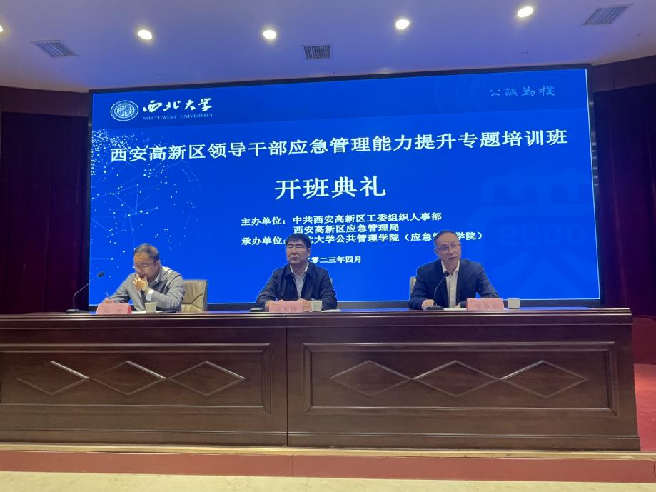 4月20日至21日,高新区党工委组织人事部、应急管理局联合举办,西北大学公共管理学院(应急管理学院)承办的“西安高新区领导干部应急管理能力提升专题培训班”开班。西安市高新区党工委组织人事部副部长沙凯,高新区应急管理局局长邵军锋,西北大学公共管理学院(应急管理学院)党委书记窦争光等领导参加开班典礼。仪式由沙凯副部长主持,窦争光书记致辞,邵军锋局长做动员讲话。各街道、园区,重点部门、国有企业和支撑服务体系相关负责人及业务主管75人参加。